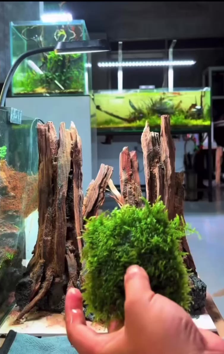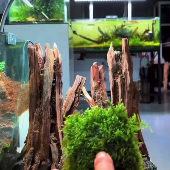 Sustrato : El musgo de Taiwán en miniatura es una planta epífita, lo que significa que se adhiere a las superficies en lugar de plantarse en el sustrato. Fije el musgo a rocas, madera flotante u otras decoraciones del acuario con hilo de pescar, hilo o pegamento. Evite enterrar el musgo en el sustrato, ya que puede provocar su descomposición.
