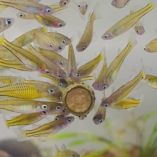 Gertrudea Rainbows are active mid-to-top dwellers that shimmer beautifully under good lighting. Males display dazzling fins with white or yellow tips and often perform gentle courtship dances when females are nearby. Keep them in groups of 6 or more to bring out their best colors and natural behaviors.