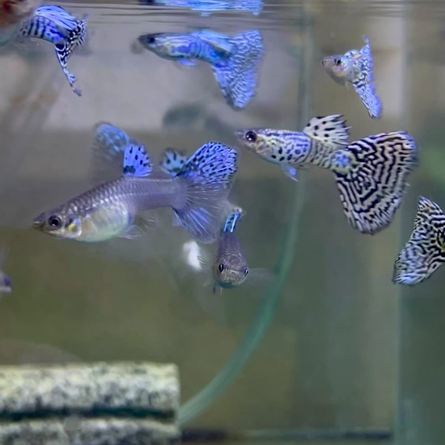 Diet: Guppies are omnivorous and will readily accept a varied diet consisting of high-quality flake or pellet food supplemented with live or frozen foods such as bloodworms, brine shrimp, and daphnia. Offering a diverse diet ensures they receive essential nutrients for optimal health and vibrant colors.